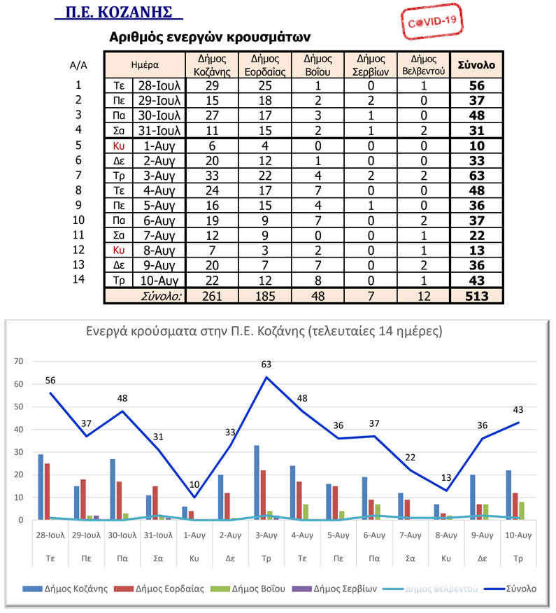 | Ημέρα | Π.Ε. Κοζάνης | Π.Ε. Καστοριάς | Π.Ε. Φλώρινας | Π.Ε. Γρεβενών | Σύνολο Π.Δ.Μ. | |