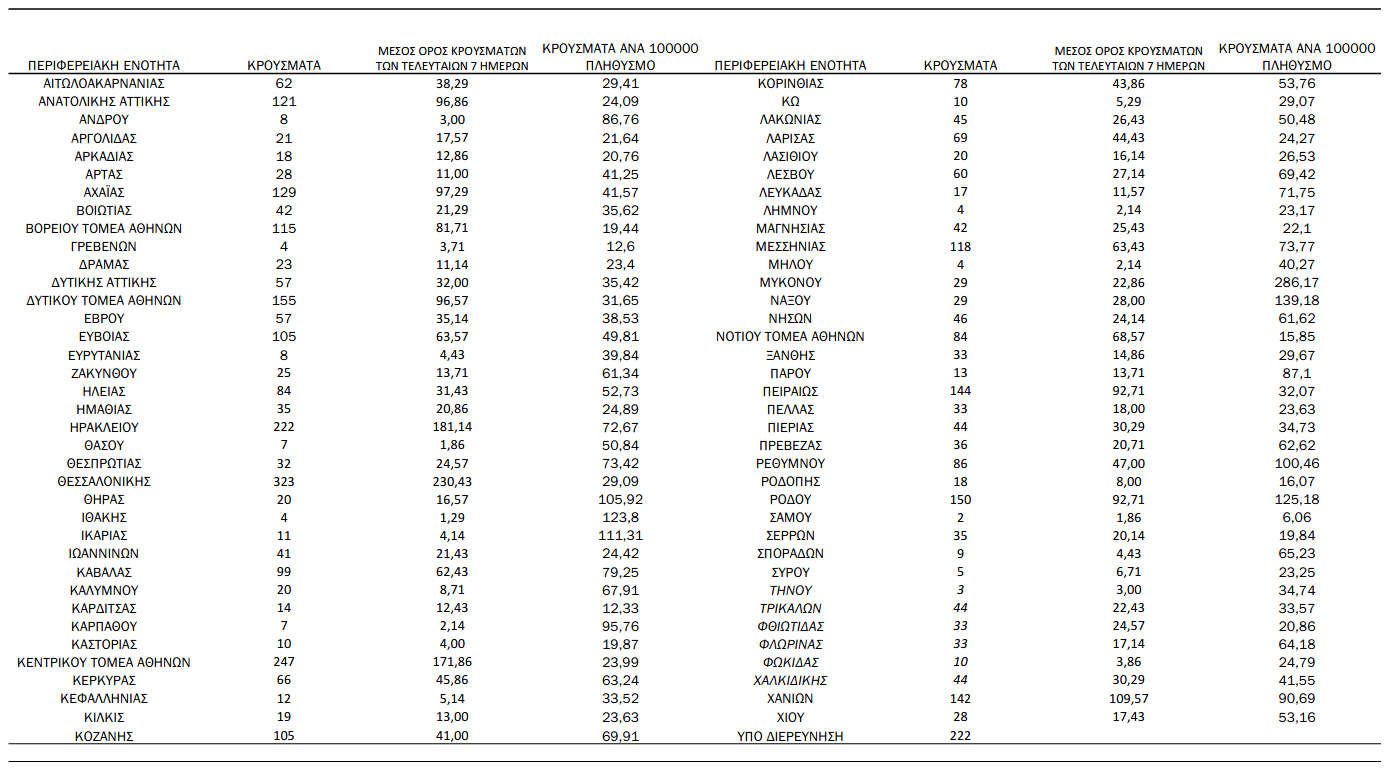Ελλάδα, Κοζάνη 17/08/2021 Τα νέα κρούσματα κορονοϊού την Τρίτη 17/8 – Ξεπέρασαν τα 100 τα κρούσματα που καταγράφονται στην Π.Ε. Κοζάνης 1 Ανακοινώθηκαν από τον ΕΟΔΥ σήμερα, 17 Αυγούστου 2021, 4.206 νέα κρούσματα κορονοϊού στη χώρα μας, 16 νέοι θάνατοι και 258 διασωληνωμένοι. Η γεωγραφική κατανομή των κρουσμάτων (κλικ στην εικόνα για μεγέθυνση):