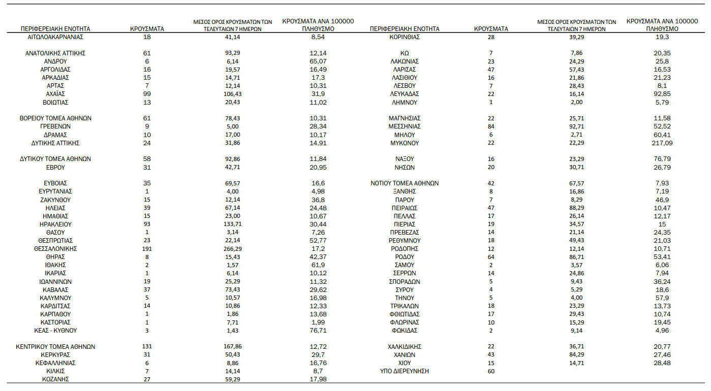 Ελλάδα, Κοζάνη 22/08/2021 Τα νέα κρούσματα κορονοϊού την Κυριακή 22/8 στη χώρα – Πόσα κρούσματα καταγράφονται στην Π.Ε. Κοζάνης 2 Ανακοινώθηκαν από τον ΕΟΔΥ σήμερα, 22 Αυγούστου 2021, 1.948 νέα κρούσματα κορονοϊού στη χώρα μας, 33 νέοι θάνατοι και 318 διασωληνωμένοι. Η γεωγραφική κατανομή των κρουσμάτων (κλικ στην εικόνα για μεγέθυνση):