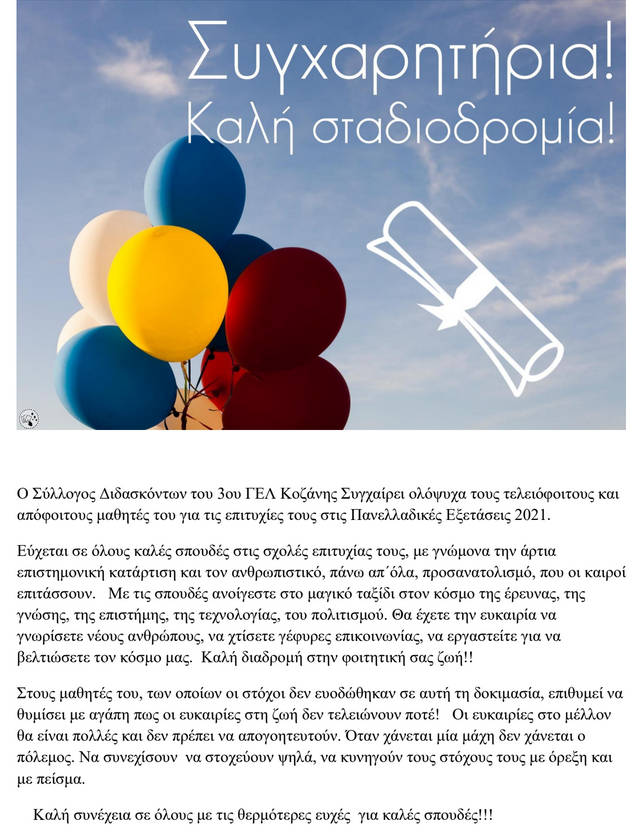 Τους ευχόμαστε όλους ολόψυχα κάθε επιτυχία στην πορεία της ζωής τους.