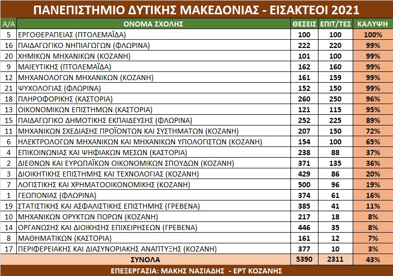 | ΠΑΝΕΠΙΣΤΗΜΙΟ ΔΥΤΙΚΗΣ ΜΑΚΕΔΟΝΙΑΣ | ΘΕΣΕΙΣ | ΕΠΙΤ/ΤΕΣ | ΚΑΛΥΨΗ |