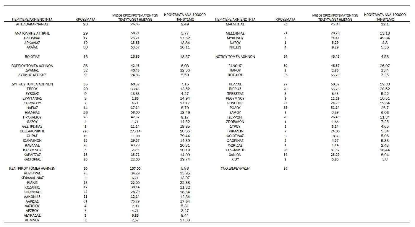 Ελλάδα 19/09/2021 Πόσα κρούσματα κορονοϊού καταγράφονται την Κυριακή 19 Σεπτεμβρίου στη χώρα – Η γεωγραφική κατανομή 1 Ανακοινώθηκαν από τον ΕΟΔΥ σήμερα, 19 Σεπτεμβρίου 2021, 1.305 νέα κρούσματα κορονοϊού στη χώρα μας, 33 νέοι θάνατοι και 348 διασωληνωμένοι. Η γεωγραφική κατανομή των κρουσμάτων (κλικ στην εικόνα για μεγέθυνση):
