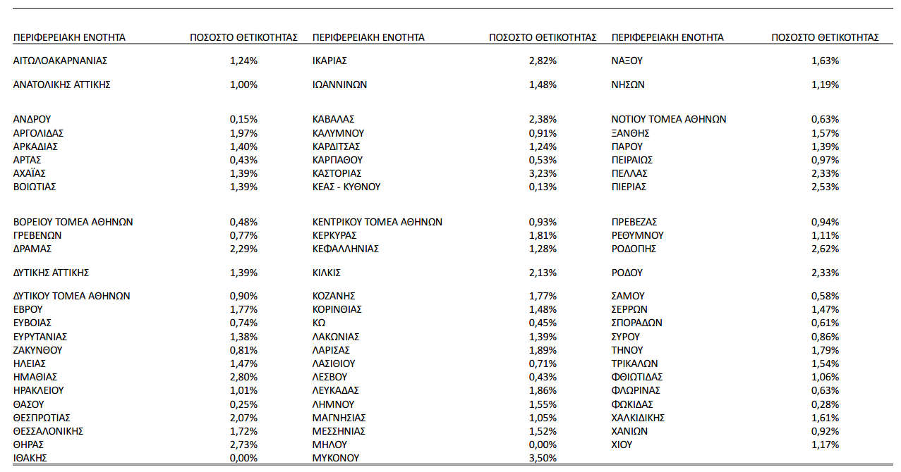 Κορονοϊός: Δείτε το ποσοστό θετικότητας της τελευταίας εβδομάδας ανά Περιφερειακή Ενότητα
