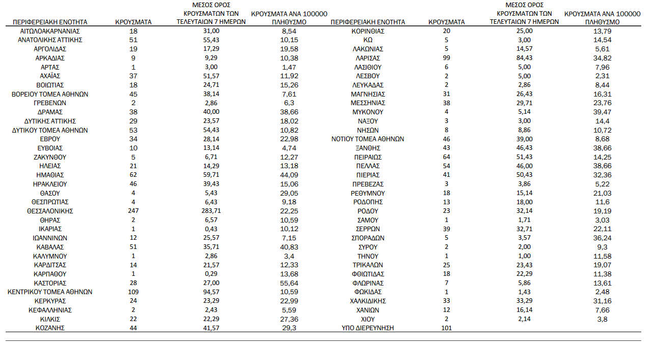 Ελλάδα 25/09/2021 Δείτε τα νέα κρούσματα κορονοϊού το Σάββατο 25/9 στη χώρα – Πόσα κρούσματα καταγράφονται στην Π.Ε. Κοζάνης 0 Ανακοινώθηκαν από τον ΕΟΔΥ σήμερα, 25 Σεπτεμβρίου 2021, 1.853 νέα κρούσματα κορονοϊού στη χώρα μας, 16 νέοι θάνατοι και 333 διασωληνωμένοι. Η γεωγραφική κατανομή των κρουσμάτων (κλικ στην εικόνα για μεγέθυνση):