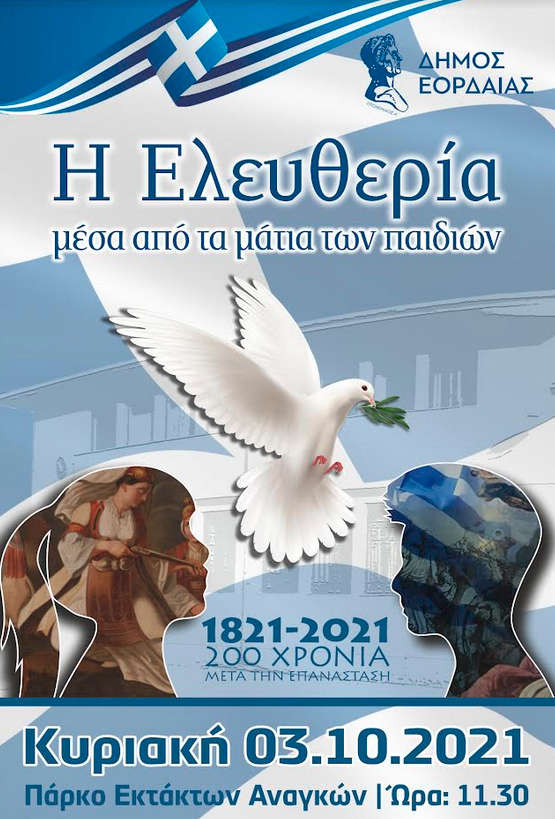 Ο Δήμος Εορδαίας, στο πλαίσιο του εορτασμού της Επετείου των 200 χρόνων από την έναρξη της Ελληνικής Επανάστασης, πραγματοποιεί εκδήλωση σε συνεργασία με τα σχολεία πρωτοβάθμιας και δευτεροβάθμιας εκπαίδευσης.
