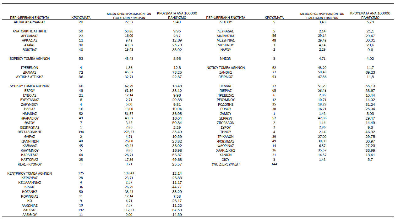 Ελλάδα, Κοζάνη 01/10/2021 Δείτε τα νέα κρούσματα κορονοϊού την Παρασκευή 1 Οκτωβρίου – Πόσα κρούσματα καταγράφονται στην Π.Ε. Κοζάνης 0 Ανακοινώθηκαν από τον ΕΟΔΥ σήμερα, 1 Οκτωβρίου 2021, 2.636 νέα κρούσματα κορονοϊού στη χώρα μας, 32 νέοι θάνατοι και 329 διασωληνωμένοι. Η γεωγραφική κατανομή των κρουσμάτων (κλικ στην εικόνα για μεγέθυνση):