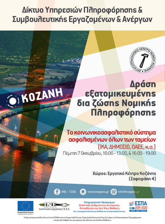 «Εξ αποστάσεως και δια ζώσης υπηρεσίες Πληροφόρησης και Συμβουλευτικής Υποστήριξης και Ενδυνάμωσης Εργαζομένων και Ανέργων» από το ΙΝΕ-ΓΣΕΕ και το Εργατικό Κέντρο Κοζάνης