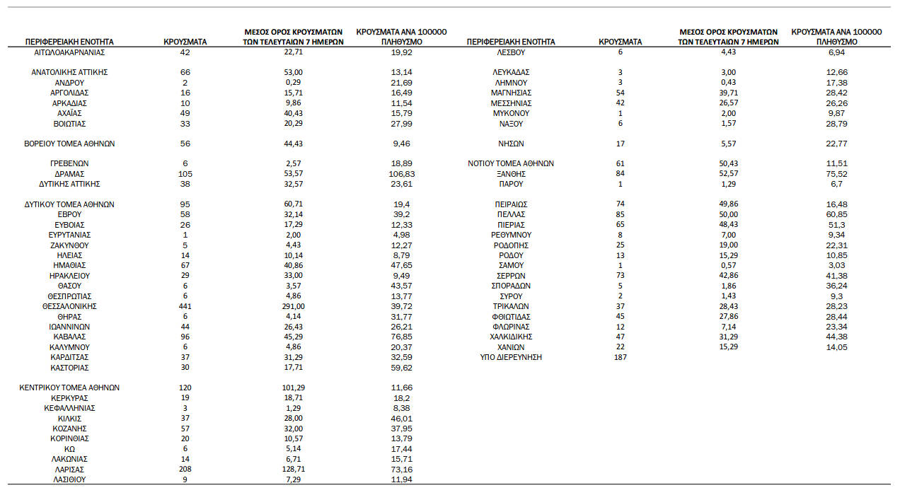 Ελλάδα, Κοζάνη 05/10/2021 Δείτε τα νέα κρούσματα κορονοϊού την Τρίτη 5/10 στη χώρα – Πόσα κρούσματα καταγράφονται στην Π.Ε. Κοζάνης 0 Ανακοινώθηκαν από τον ΕΟΔΥ σήμερα, 5 Οκτωβρίου 2021, 2.876 νέα κρούσματα κορονοϊού στη χώρα μας, 34 νέοι θάνατοι και 334 διασωληνωμένοι. Η γεωγραφική κατανομή των κρουσμάτων (κλικ στην εικόνα για μεγέθυνση):