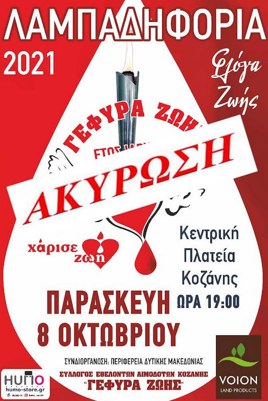 Δυστυχώς ο καιρός δεν επιτρέπει την διεξαγωγή της λαμπαδηφορίας του ΣΕΑ «Γέφυρα Ζωής» σήμερα Παρασκευή 8 Οκτωβρίου 2021. Η εκδήλωση ακυρώνεται.