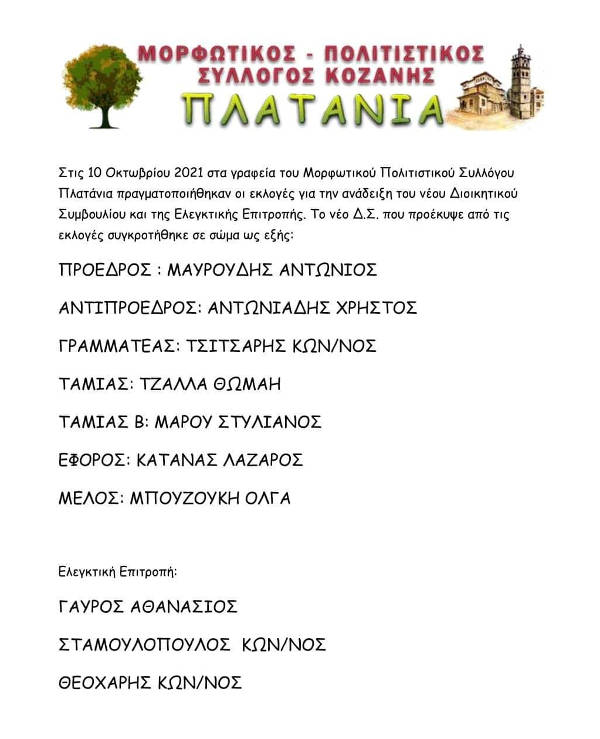 Το νέο Δ.Σ. του Μορφωτικού Πολιτιστικού Συλλόγου Πλατάνια: