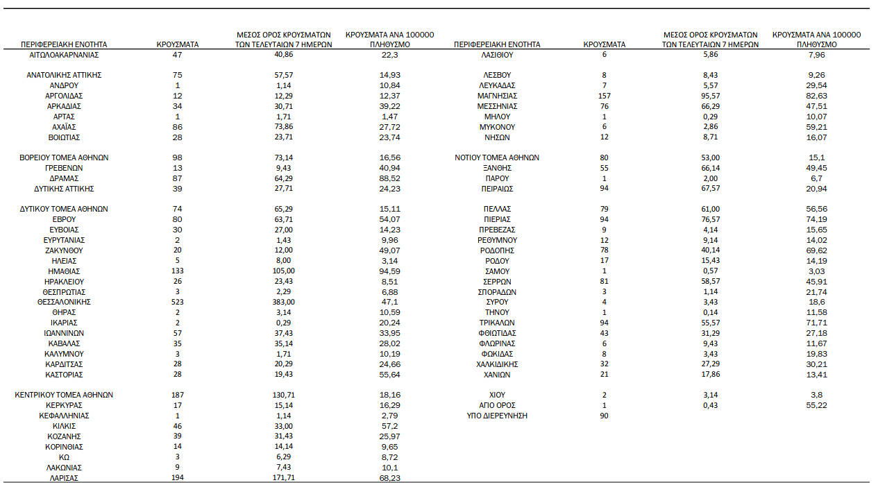 Τα νέα κρούσματα κορονοϊού την Τετάρτη 20/10 – Πόσα κρούσματα καταγράφονται στην Π.Ε. Κοζάνης