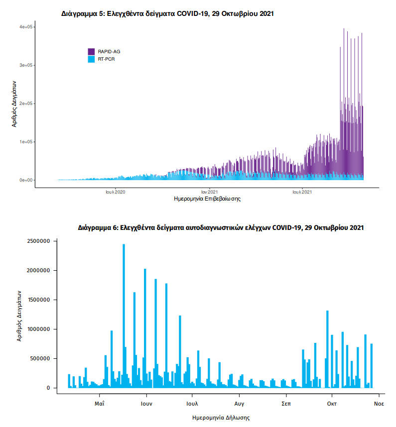 Ανακοινώθηκαν από τον ΕΟΔΥ σήμερα, 29 Οκτωβρίου 2021, 3.643 νέα κρούσματα κορονοϊού στη χώρα μας, 55 νέοι θάνατοι και 392 διασωληνωμένοι.