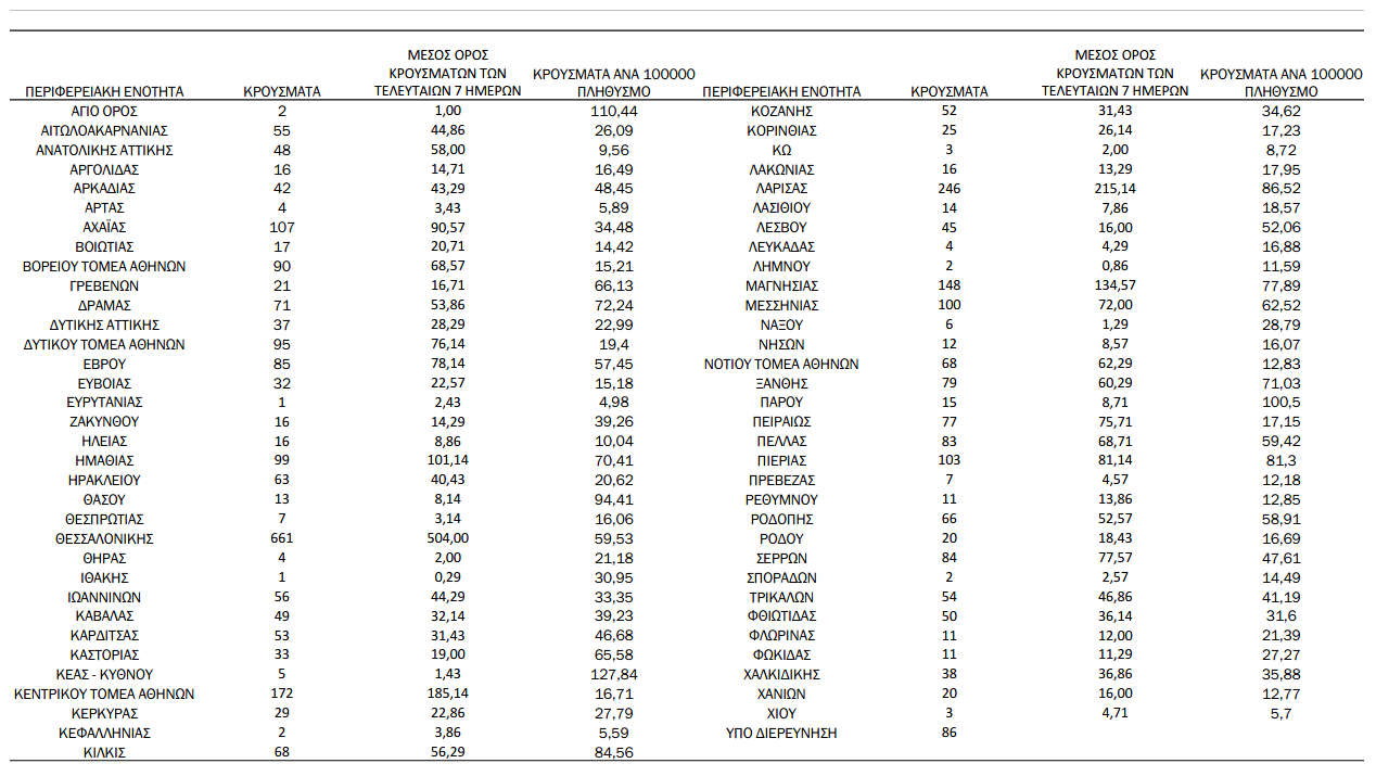 Τα νέα κρούσματα κορονοϊού στη χώρα την Παρασκευή 29 Οκτωβρίου – Αυξημένα κρούσματα στην Π.Ε. Κοζάνης