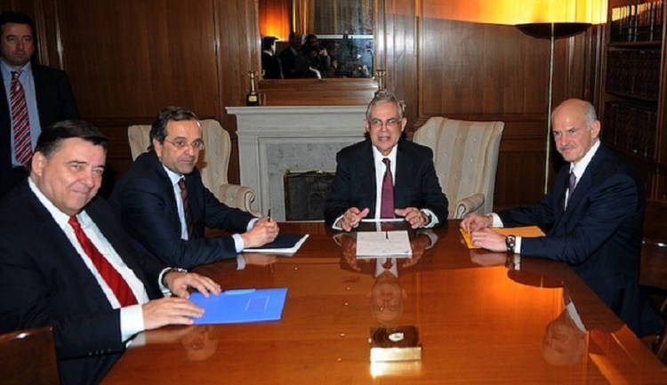 -Μέρκελ-Σόιμπλε, Σαρκοζί και ΔΝΤ με αιχμή του δόρατος την ΤΡΟΙΚΑ τοποθέτησαν μια κυβέρνηση στην πατρίδα μας που θα εξυπηρετούσα καθαρά, όπως αργότερα ομολογήθηκε, τα συμφέροντα των Γερμανο-Γαλλικών Τραπεζών.