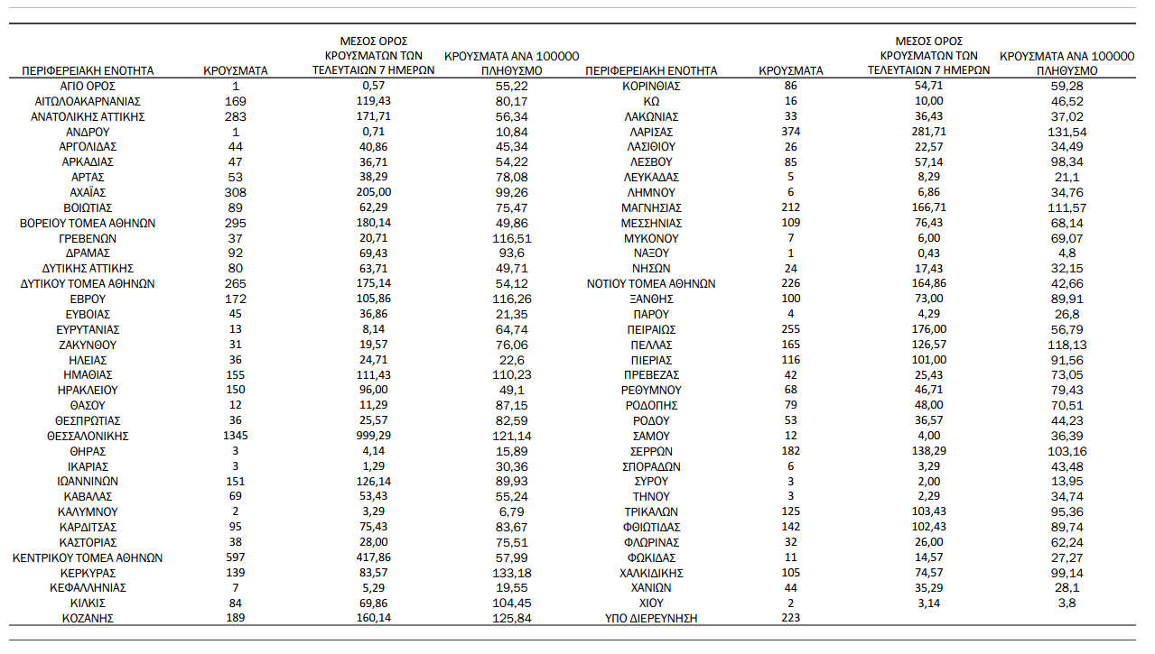 Ελλάδα, Κοζάνη 16/11/2021 Αυξημένα τα νέα κρούσματα κορονοϊού την Τρίτη 16/9 στη χώρα – Πόσα κρούσματα καταγράφονται στην Π.Ε. Κοζάνης 0 Ανακοινώθηκαν από τον ΕΟΔΥ σήμερα, 16 Νοεμβρίου 2021, 8.129 νέα κρούσματα κορονοϊού στη χώρα μας, 80 νέοι θάνατοι και 547 διασωληνωμένοι. Η γεωγραφική κατανομή των κρουσμάτων (κλικ στην εικόνα για μεγέθυνση): Δείγματα που έχουν ελεγχθεί:
