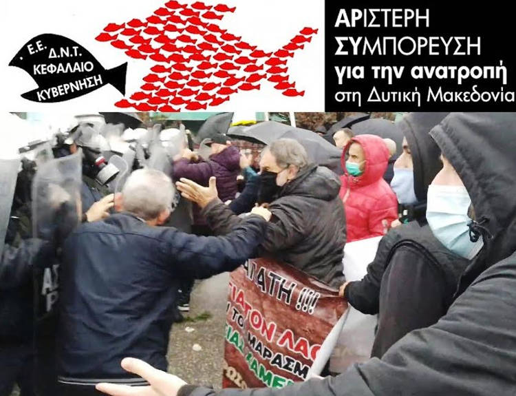 Χαιρετίζουμε όλους αγωνιστές, εργαζόμενους, αγρότες, φοιτητές και νεολαία που αψήφησαν τη βία και την αστυνομοκρατία και βγήκαν να διαδηλώσουν ενάντια στην πολύπλευρη καταστροφή και ερημοποίηση της Δυτικής Μακεδονίας.