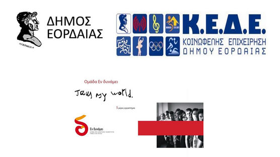 Ο Δήμος Εορδαίας και η Κοινωφελής Επιχείρηση (Κ.Ε.Δ.Ε.) συνεργασία με την ομάδα «ΕΝ ΔΥΝΑΜΕΙ» πραγματοποιούν το εργαστήριο “Είμαι ο κόσμος μου” που έχει συν-σχεδιαστεί από έμπειρα αλλά και νεαρά μέλη του «Εν δυνάμει», τα οποία θα αναλάβουν το μεγαλύτερο μέρος της υλοποίησής του.