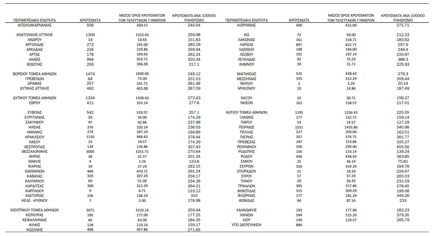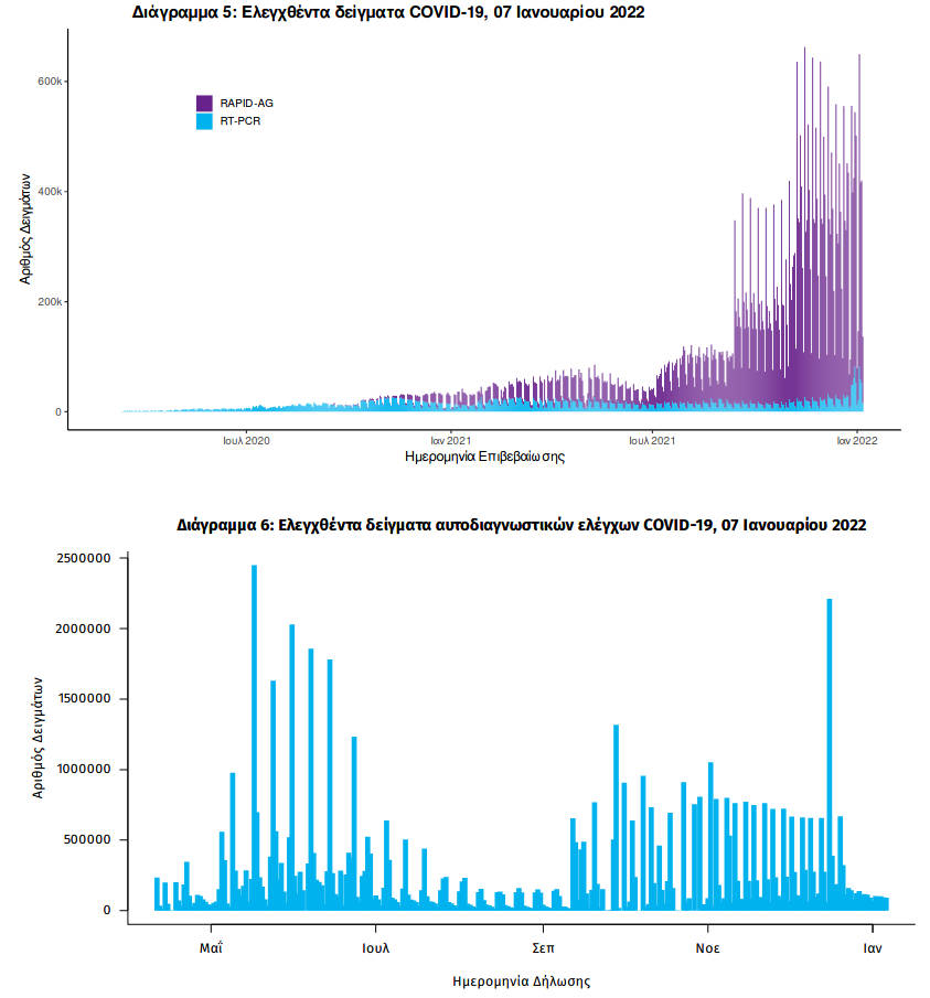 Ελλάδα, Κοζάνη 07/01/2022 Δείτε τα νέα κρούσματα κορονοϊού της Παρασκευής 7/1 στη χώρα – Πόσα κρούσματα καταγράφονται στην Π.Ε. Κοζάνης 0 Ανακοινώθηκαν από τον ΕΟΔΥ σήμερα, 7 Ιανουαρίου 2022: 29.334 νέα κρούσματα κορονοϊού στη χώρα μας, 78 νέοι θάνατοι και 632 διασωληνωμένοι. Η γεωγραφική κατανομή των κρουσμάτων (κλικ στην εικόνα για μεγέθυνση): Δείγματα που έχουν ελεγχθεί: