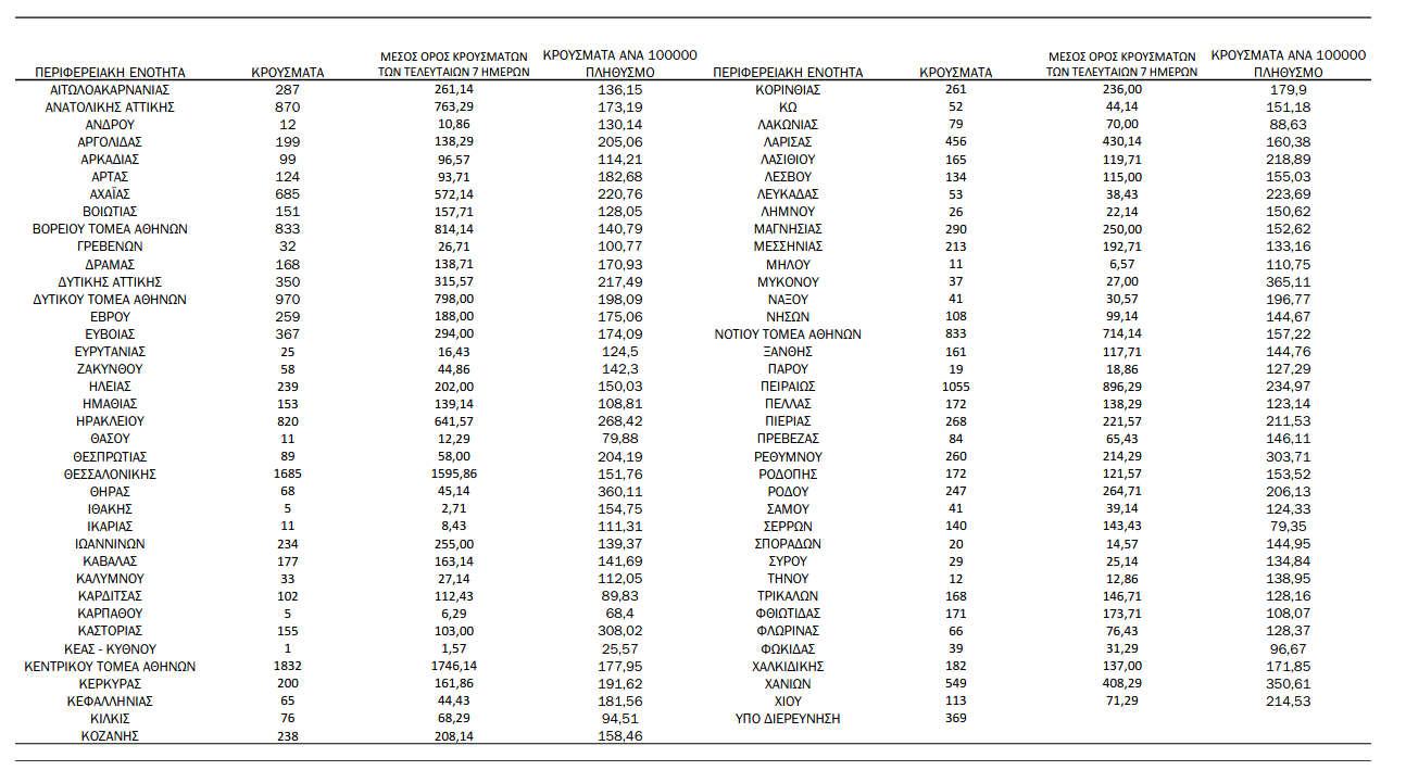 Ανακοινώθηκαν από τον ΕΟΔΥ σήμερα, 17 Ιανουαρίου 2022: