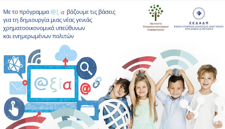 Το Ινστιτούτο Χρηματοοικονομικού Αλφαβητισμού, έχοντας αποκτήσει σημαντική και πολυετή εμπειρία στην χρηματοοικονομική εκπαίδευση παιδιών και εφήβων με εκτεταμένη σειρά καινοτόμων δράσεων, δημιούργησε με την ευγενική χορηγία της Ένωσης Εταιρειών Διαχείρισης Απαιτήσεων από Δάνεια και Πιστώσεις (ΕΕΔΑΔΠ) το «Πρόγραμμα @ξία», μία πρωτοποριακή και εξειδικευμένη εκπαιδευτική πλατφόρμα (microsite) με σκοπό την καλλιέργεια της χρηματοοικονομικής γνώσης και την χρηματοοικονομική ενδυνάμωση παιδιών ηλικίας 9 έως 11 ετών.