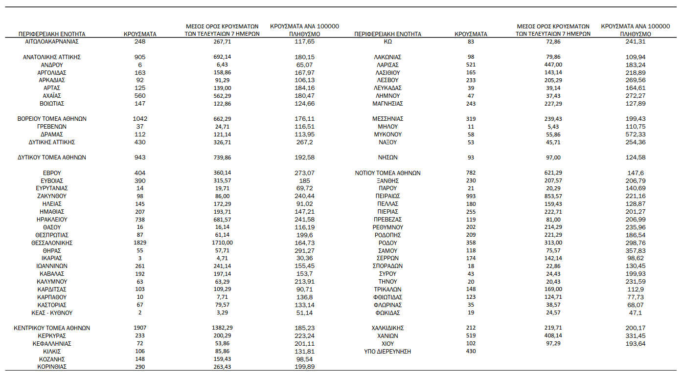Ελλάδα, Κοζάνη 29/01/2022 Τα νέα κρούσματα κορονοϊού το Σάββατο 29 Ιανουαρίου στη χώρα – Πόσα κρούσματα καταγράφονται στην Π.Ε. Κοζάνης 0 Ανακοινώθηκαν από τον ΕΟΔΥ σήμερα, 29 Ιανουαρίου 2022: 19.584 νέα κρούσματα κορονοϊού στη χώρα μας, 78 νέοι θάνατοι και 583 διασωληνωμένοι. Η γεωγραφική κατανομή των κρουσμάτων (κλικ στην εικόνα για μεγέθυνση): Δείγματα που έχουν ελεγχθεί:
