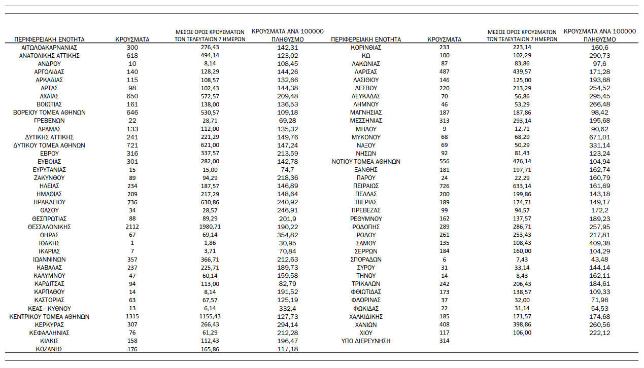 Ανακοινώθηκαν από τον ΕΟΔΥ σήμερα, 11 Φεβρουαρίου 2022: