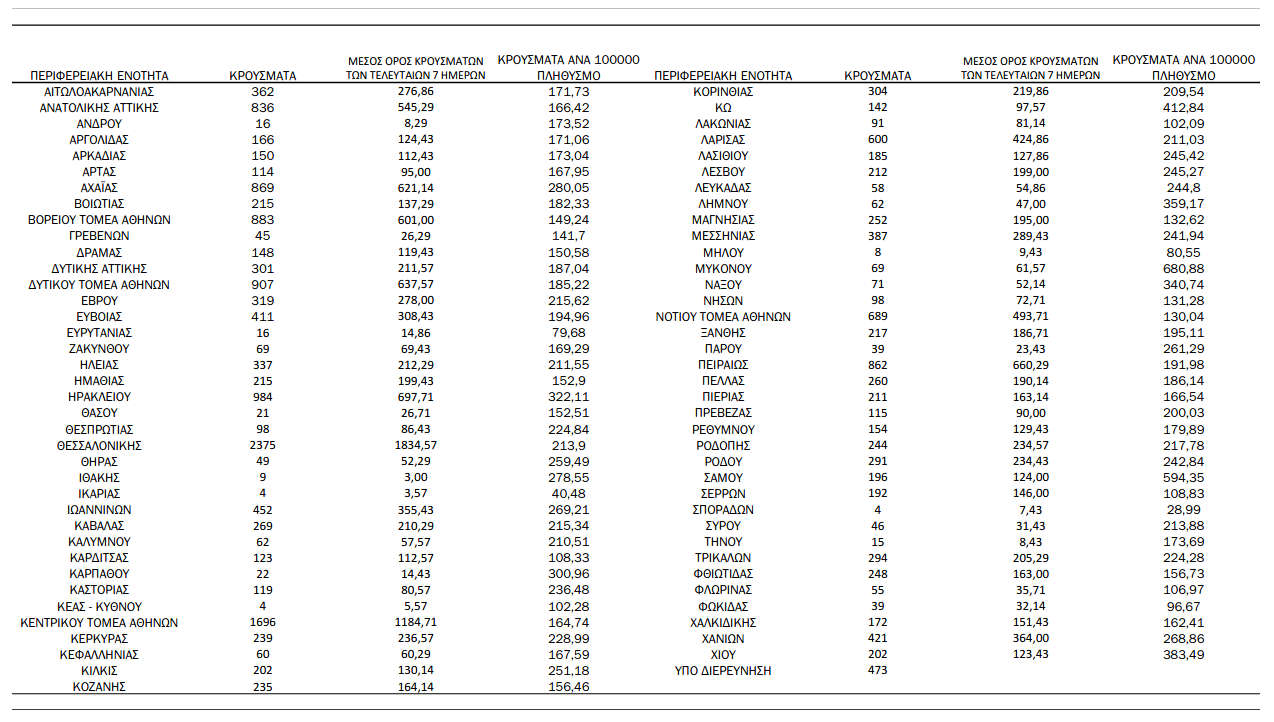 Ελλάδα, Κοζάνη 15/02/2022 Τα νέα κρούσματα κορονοϊού την Τρίτη 15 Φεβρουαρίου – Αυξημένα τα κρούσματα στην Π.Ε. Κοζάνης 0 Ανακοινώθηκαν από τον ΕΟΔΥ σήμερα, 15 Φεβρουαρίου 2022: 21.412 νέα κρούσματα κορονοϊού στη χώρα μας, 77 νέοι θάνατοι και 489 διασωληνωμένοι. Η γεωγραφική κατανομή των κρουσμάτων (κλικ στην εικόνα για μεγέθυνση): Δείγματα που έχουν ελεγχθεί: