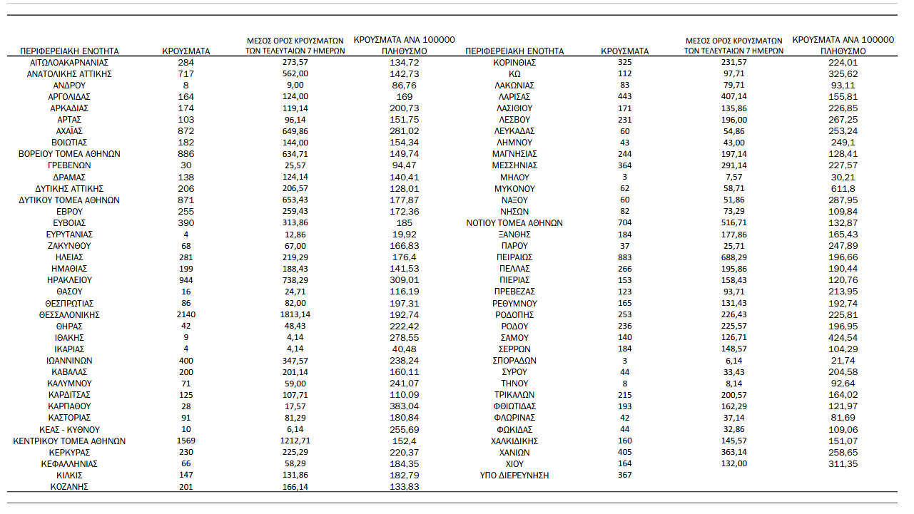 Ελλάδα, Κοζάνη 16/02/2022 Δείτε τα κρούσματα κορονοϊού της Τετάρτης 16/2 στη χώρα – Πόσα κρούσματα καταγράφονται στην Π.Ε. Κοζάνης 0 Ανακοινώθηκαν από τον ΕΟΔΥ σήμερα, 16 Φεβρουαρίου 2022: 19.509 νέα κρούσματα κορονοϊού στη χώρα μας, 82 νέοι θάνατοι και 485 διασωληνωμένοι. Η γεωγραφική κατανομή των κρουσμάτων (κλικ στην εικόνα για μεγέθυνση): Δείγματα που έχουν ελεγχθεί: