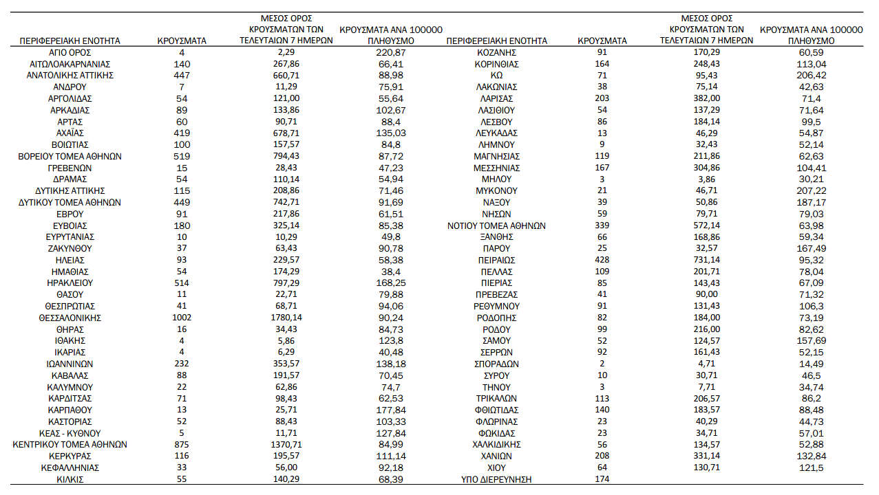 Ανακοινώθηκαν από τον ΕΟΔΥ σήμερα, 20 Φεβρουαρίου 2022:
