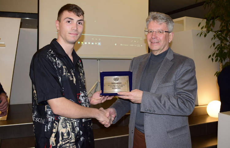 Απονέμοντας στον Γρηγόρη Χάσο την τιμητική πλακέτα, στην εκδήλωση της Βασιλόπιτας της Γυμναστικής Ένωσης Φλώρινας (Γ.Ε.Φ.), του ευχήθηκα «ακόμα πιο ψηλά».