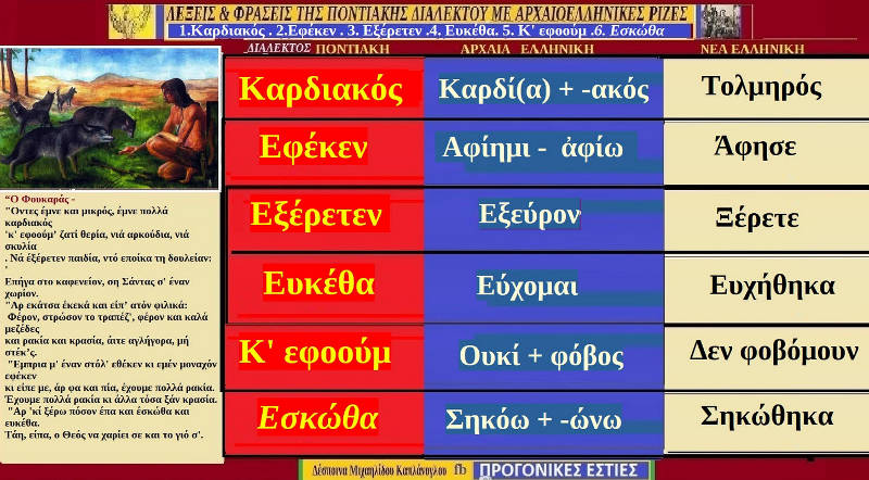 Η επιλογή των λέξεων της Ποντιακής διαλέκτου προέρχονται από Ποντιακούς στίχους τραγουδιών