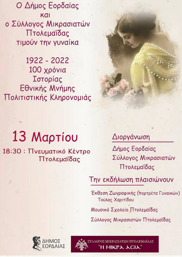 Ο Δήμος Εορδαίας και ο Σύλλογος Μικρασιατών Πτολεμαΐδας τιμούν την γυναίκα.