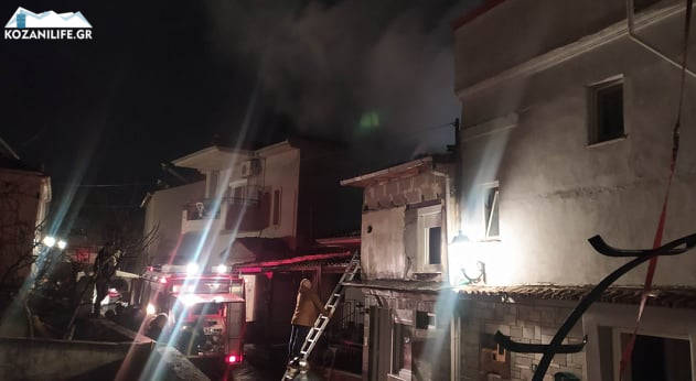 5 οχήματα και 12 άντρες της Πυροσβεστικής Υπηρεσίας Κοζάνης χρειάστηκαν για την κατάσβεση της μεγάλης φωτιάς που εκδηλώθηκε το απόγευμα του Σαββάτου 19 Μαρτίου σε κεραμοσκεπή σπιτιού στην οδό Νικοπόλεως στα Ηπειρώτικα της Κοζάνης.