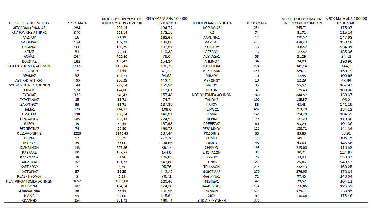 Ελλάδα, Κοζάνη 26/03/2022 Τα νέα κρούσματα κορονοϊού το Σάββατο 26 Μαρτίου στη χώρα – Πόσα κρούσματα καταγράφονται στην Π.Ε. Κοζάνης 0 Ανακοινώθηκαν από τον ΕΟΔΥ σήμερα, 26 Μαρτίου 2022: 16.558 νέα κρούσματα κορονοϊού στη χώρα μας, 56 νέοι θάνατοι και 341 διασωληνωμένοι. Η γεωγραφική κατανομή των κρουσμάτων (κλικ στην εικόνα για μεγέθυνση):