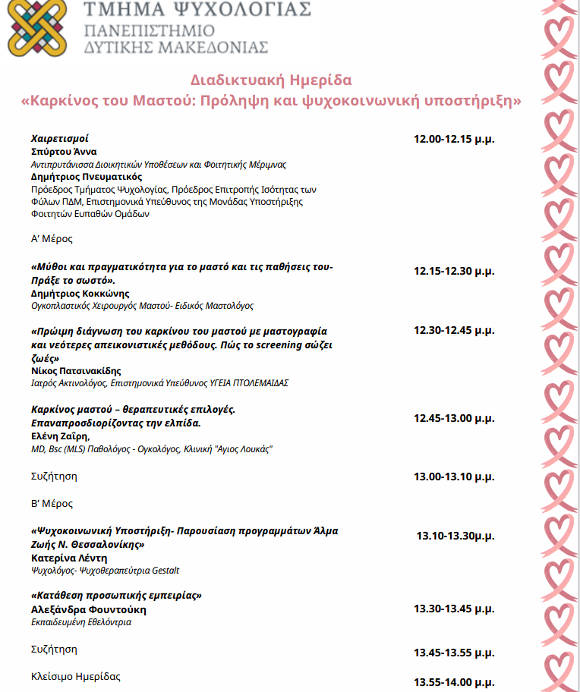 Πανεπιστήμιο Δυτικής Μακεδονίας: Διαδικτυακή ημερίδα με τίτλο «Καρκίνος του Μαστού: Πρόληψη και ψυχοκοινωνική υποστήριξη»