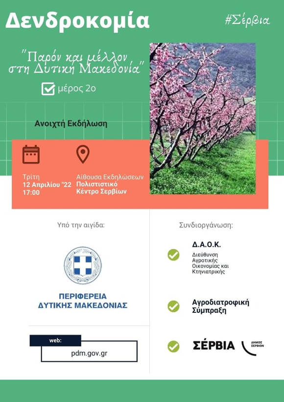 Εκδήλωση στα Σέρβια: «Δενδροκομία – Παρόν και μέλλον στην Δυτική Μακεδονία»