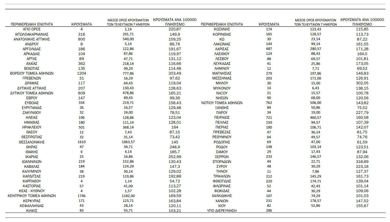 15.690 νέα κρούσματα κορονοϊού στη χώρα μας, 64 νέοι θάνατοι και 356 διασωληνωμένοι.