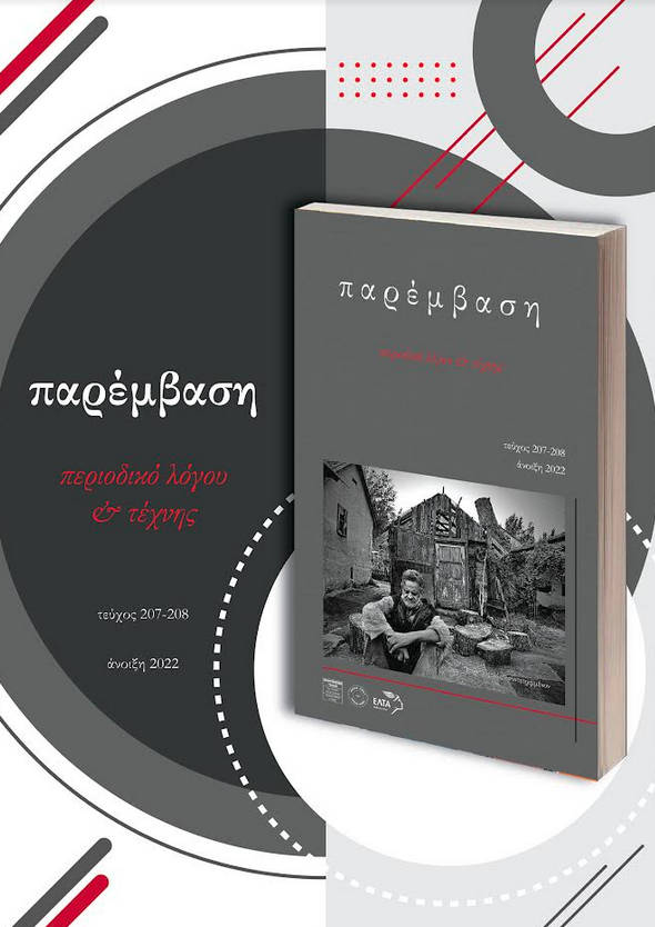 Μόλις κυκλοφόρησε το νέο τεύχος του Περιοδικού Λόγου & Τέχνης «Παρέμβαση» (Άνοιξη 2022) με πλούσιο περιεχόμενο. Τα περιεχόμενα είναι τα εξής: