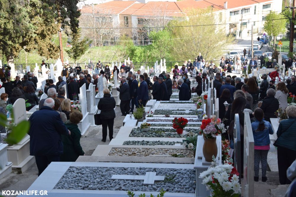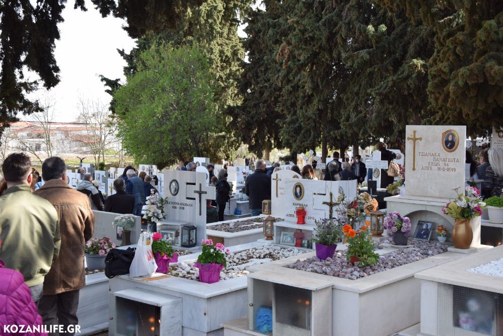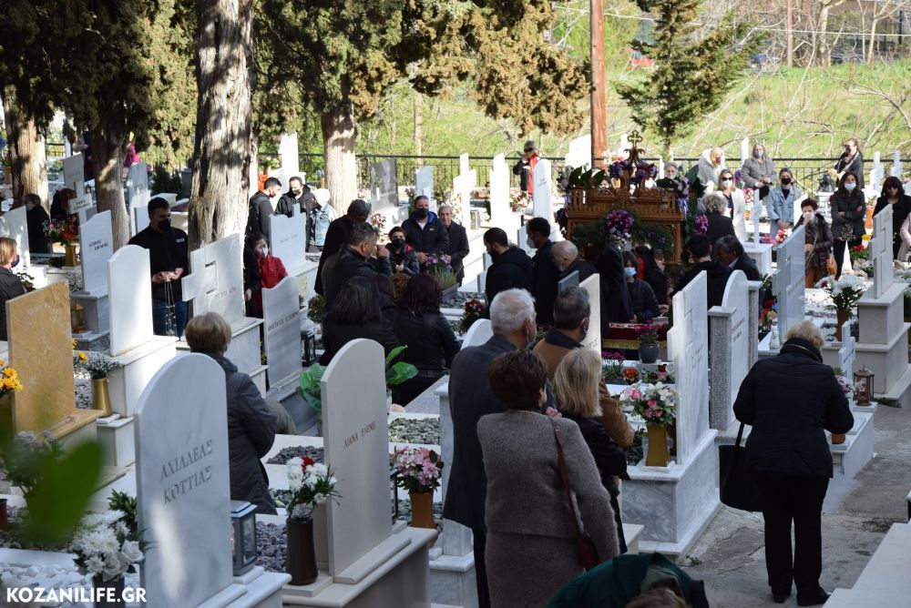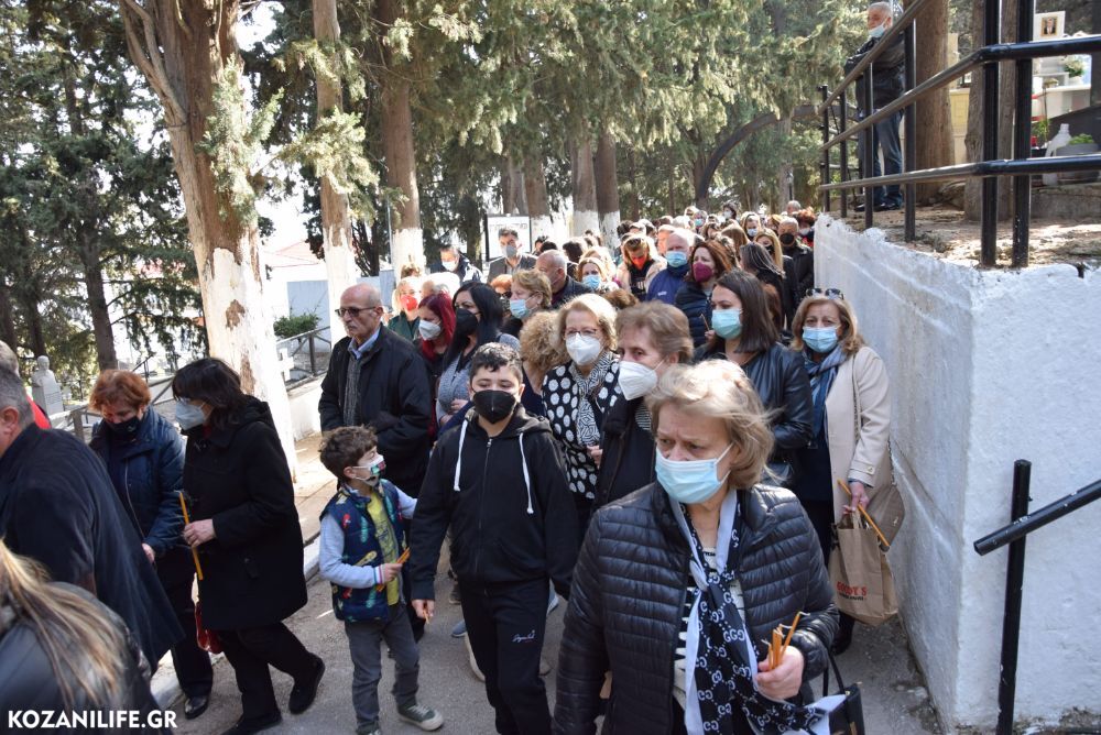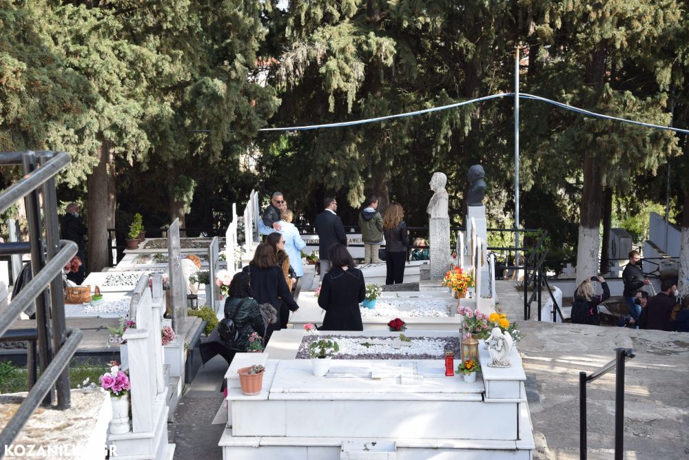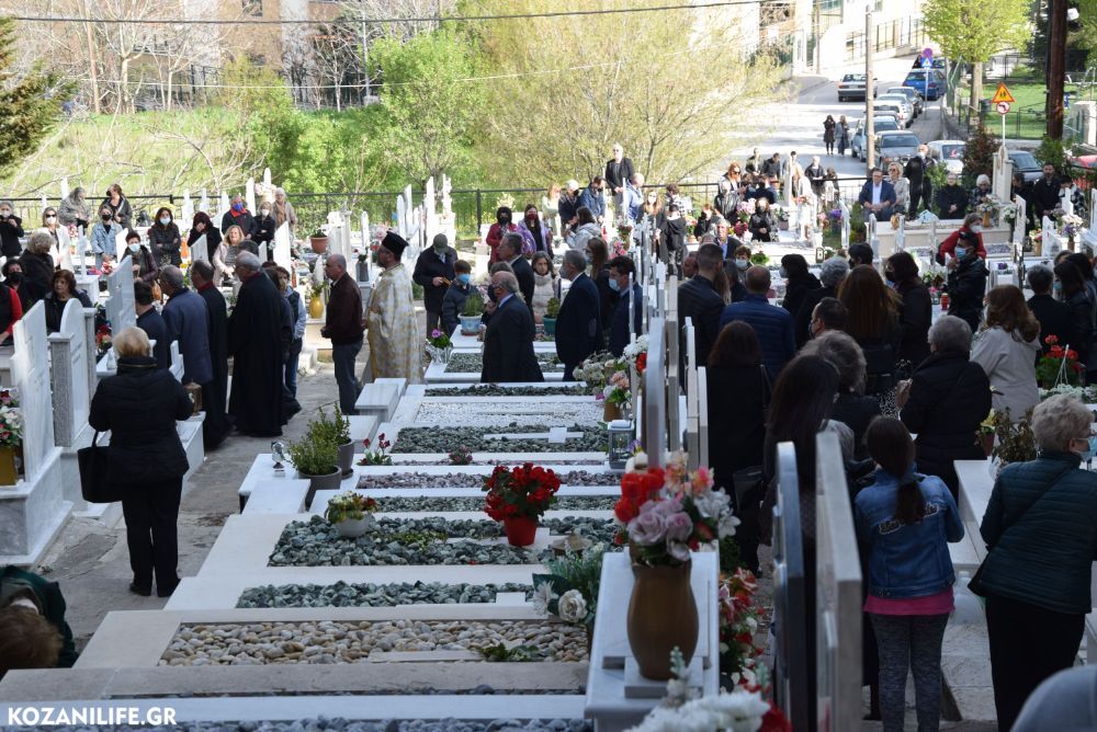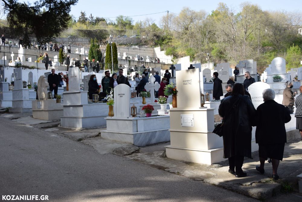 Πλήθος πιστών παραβρέθηκε το απόγευμα της Μεγάλης Παρασκευής 22 Απριλίου 2022 στα νεκροταφεία της Κοζάνης, δίπλα στα αγαπημένα τους πρόσωπα που έχουν φύγει από τη ζωή, για την καθιερωμένη περιφορά του Επιταφίου του Ι.Ν. Αγίου Γεωργίου.