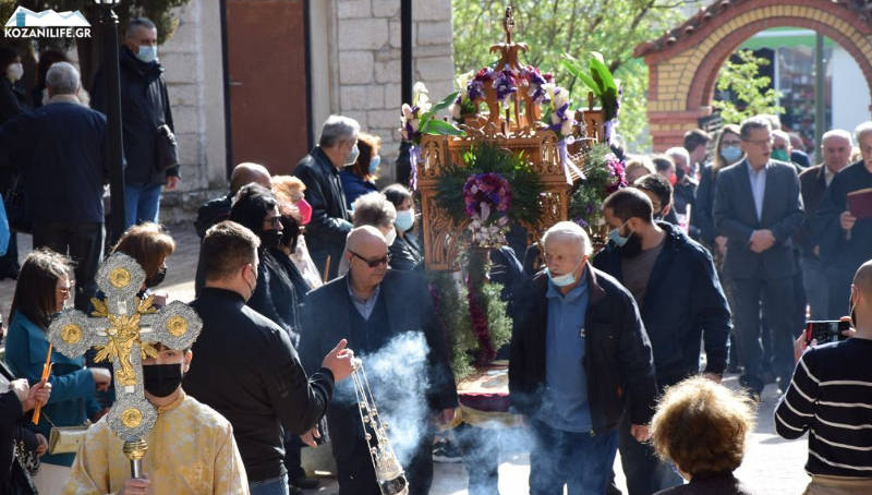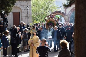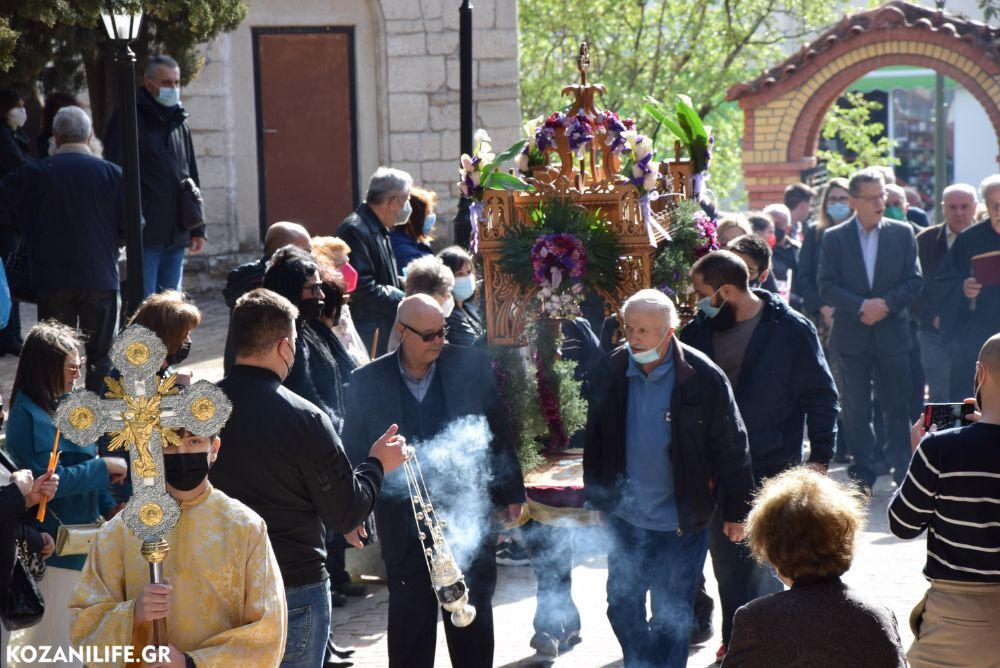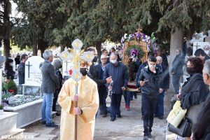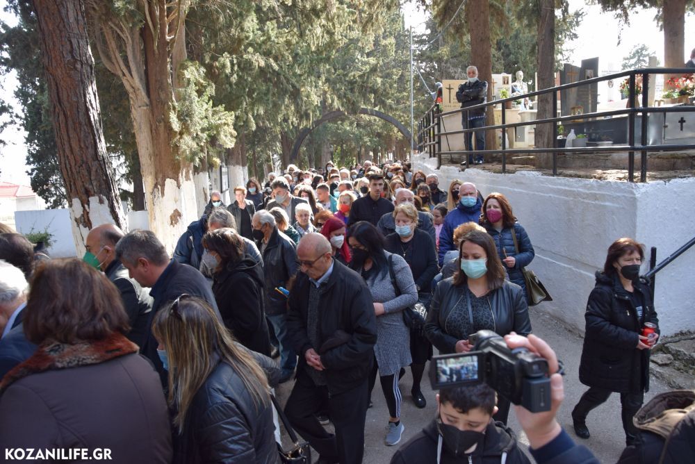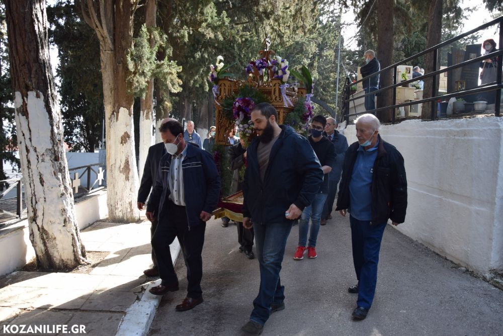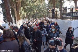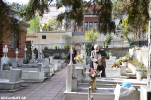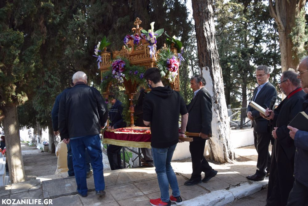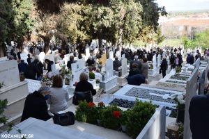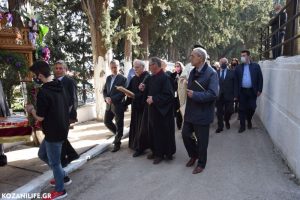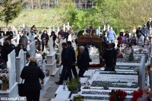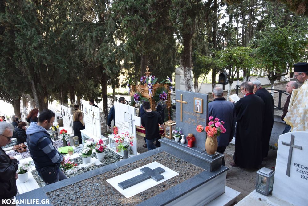 Πλήθος πιστών παραβρέθηκε το απόγευμα της Μεγάλης Παρασκευής 22 Απριλίου 2022 στα νεκροταφεία της Κοζάνης, δίπλα στα αγαπημένα τους πρόσωπα που έχουν φύγει από τη ζωή, για την καθιερωμένη περιφορά του Επιταφίου του Ι.Ν. Αγίου Γεωργίου.