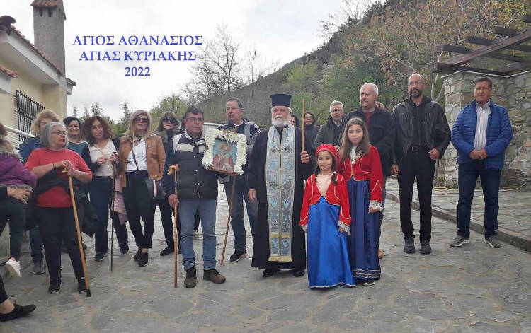 Στην πανήγυρη του Αγίου Αθανασίου Ενορίας Αγίας Κυριακής, τελέστηκε (8-5-2022) η Θεία Λειτουργία στο Ι. Εξωκλήσι. Έψαλαν οι αδερφοί Χάρης και Δημήτρης Κουλιούφας. Λιτανεύτηκε η εικόνα του Αγίου Αθανασίου από το Ξωκλήσι μέχρι το χωριό. Έγινε (στο προαύλιο) η μικρή αναστάσιμη τελετή, επιμνημόσυνη δέηση και κατάθεση στεφάνου και η χρίση ελαίου στους πιστούς.