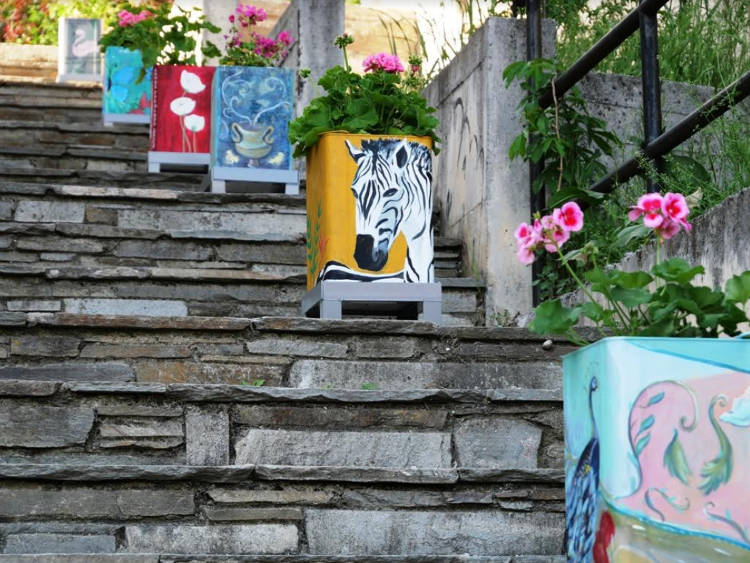 Χρησιμοποιώντας τενεκέδες τυριού, όπως συνηθίζονταν στο παρελθόν για τη διακόσμηση των αυλών των σπιτιών, οι εθελοντές μας – για μια ακόμη φορά – συνδύασαν πολύχρωμα λουλούδια με περίτεχνες ζωγραφιές, προσφέροντας όμορφες εικόνες στους διερχόμενους πολίτες.