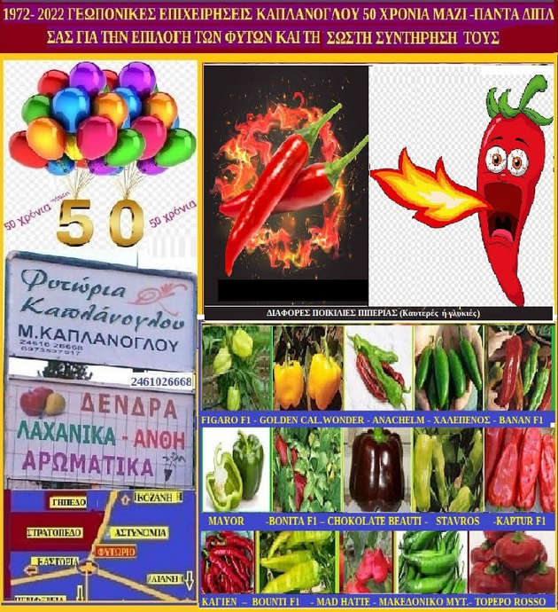 α) ΚΑΜΠΑΝΑΣ , όπως οι California wonder, golden California wonder, , Bonita F1 FM, Figaro F1 Vilmorin, Mayata F1 RS Asimi, Eagle, Vivaldi F1 Vilmorin, Maor, Tequila, Yolo wonder,Mad Hatter Pepper,