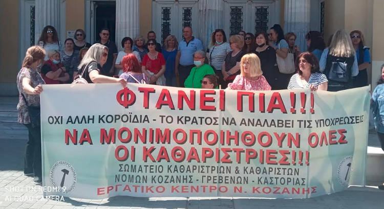 Τα αιτήματά τους κατέθεσαν, μέσω ψηφίσματος, οι εκπρόσωποι του Σωματείου Καθαριστριών/ών Δημόσιων Σχολείων Πρωτοβάθμιας & Δευτεροβάθμιας Εκπαίδευσης Κοζάνης, Γρεβενών και Καστοριάς, στον γενικό γραμματέα του Δήμου Κοζάνης, Νίκο Νικολάου, κατά τη συνάντησή τους, την Τρίτη 17 Μαΐου 2022.