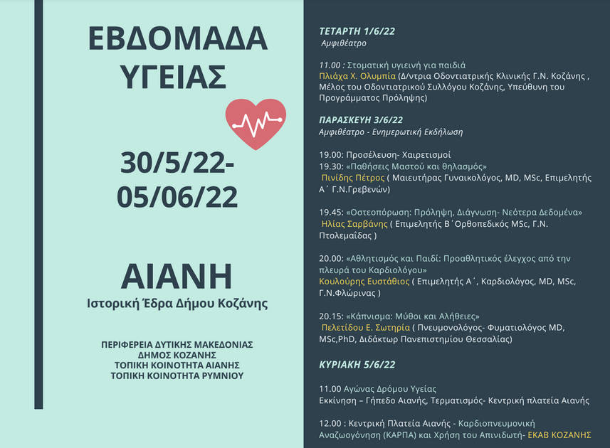 Εβδομάδα Υγείας με εκδήλωση στην Αιανή: