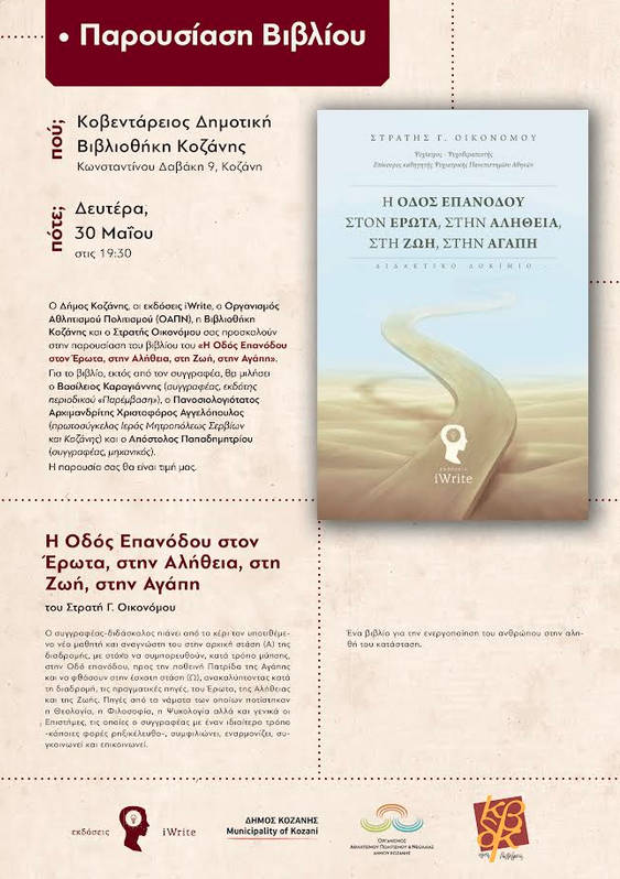 Παρουσίαση του βιβλίου τη Δευτέρα 30 Μαΐου 2022, στις 7.30 το απόγευμα, στην Κοβεντάρειο Δημοτική Βιβλιοθήκη Κοζάνης.