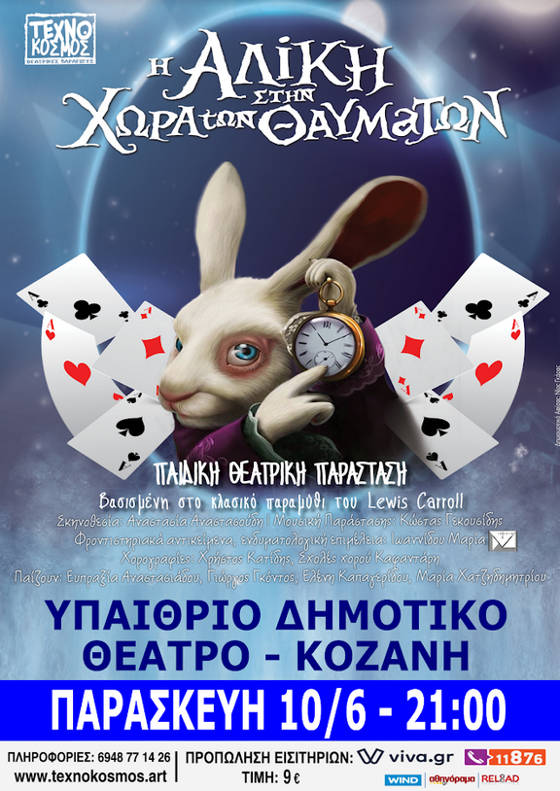 Οι Θεατρικές παραγωγές Τεχνόκοσμος παρουσιάζουν την παιδική θεατρική παράσταση «Η Αλίκη στην χώρα των  θαυμάτων», βασισμένη στο κλασικό παραμύθι του Lewis Carroll.