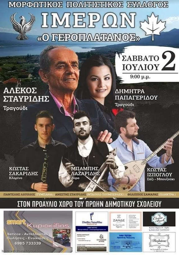 Ο Μ.Π.Σ. ΙΜΕΡΩΝ “Ο ΓΕΡΟΠΛΑΤΑΝΟΣ” σας προσκαλεί στον πρώτο ετήσιο χορό που διοργανώνει το ΣΑΒΒΑΤΟ 2 ΙΟΥΛΙΟΥ στον προαύλιο χώρο του Δημοτικού σχολείου Ιμερων.