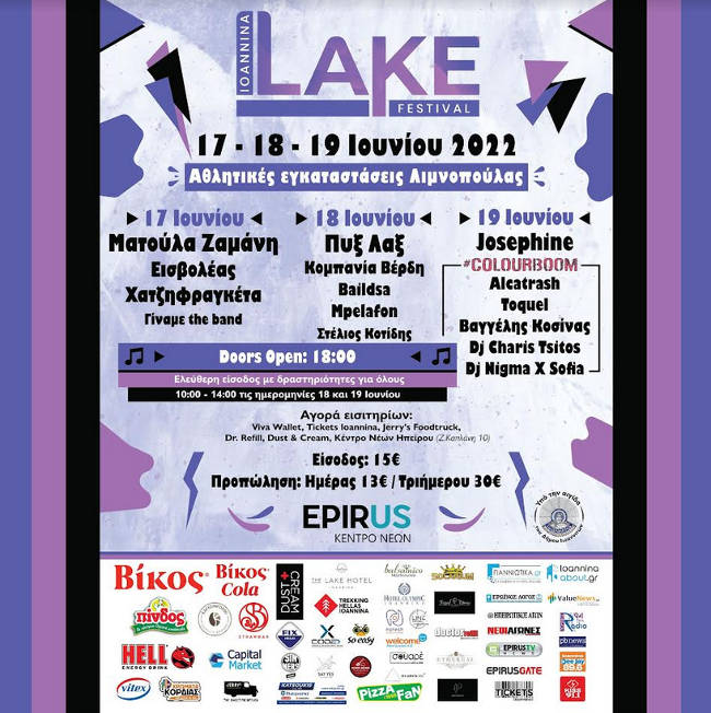 Το Ioannina Lake Festival  υπό την διοργάνωση του Κέντρου Νέων Ηπείρου υπόσχεται ένα τριήμερο γεμάτο δράσεις και συναυλίες για όλα τα γούστα.