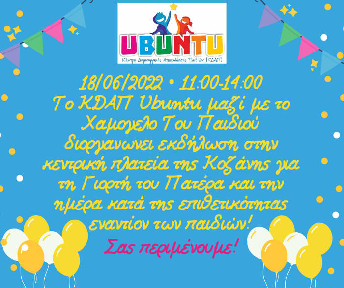 Εκδήλωση το Σάββατο 18/06/2022 στις 11:00-14:00 από το ΚΔΑΠ Ubuntu